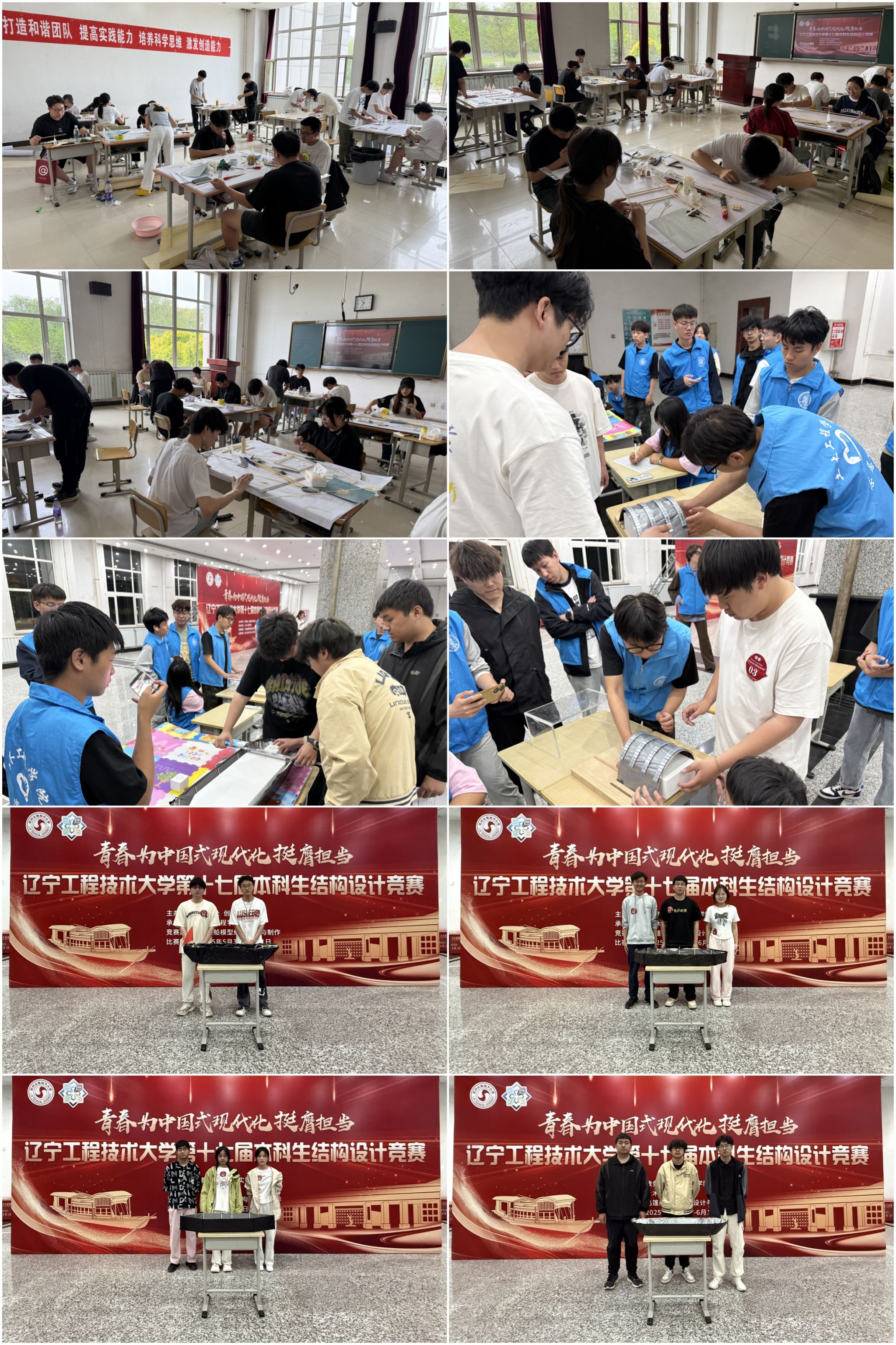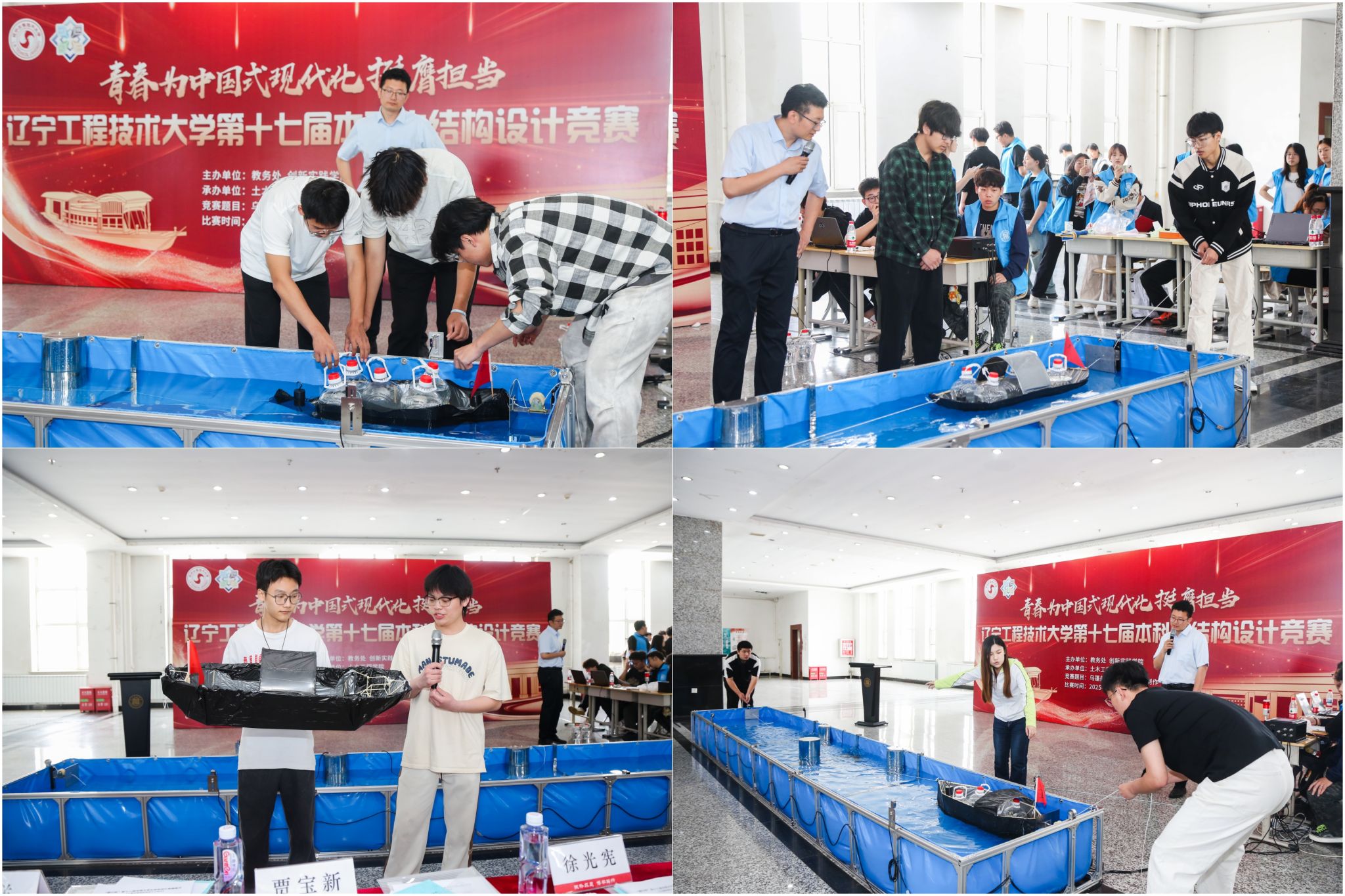 6月1日,我校第十七届本科生结构设计竞赛暨2025年辽宁省大学生结构设计竞赛校内选拔赛在玉龙校园圆满落幕。本次竞赛由教务处和创新实践学院主办,9001cc金沙登录承办。共有来自土木工程、工程力学、智能建造、建筑学、交通工程、给排水科学与工程、建筑环境与能源应用工程等专业的50余支队伍报名参赛,19支队伍进入决赛。本次竞赛以“乌篷船模型结构设计与制作”为题,重点考察学生的计算机建模能力、多荷载工况组合下的船模型结构优化分析计算能力、复杂空间节点设计安装能力,检验本科生对工程结构知识的综合运用能力。