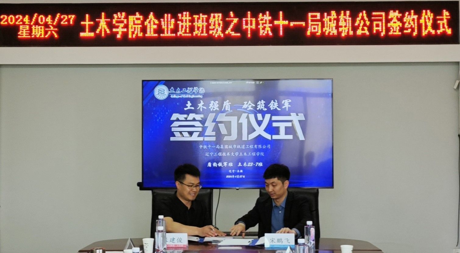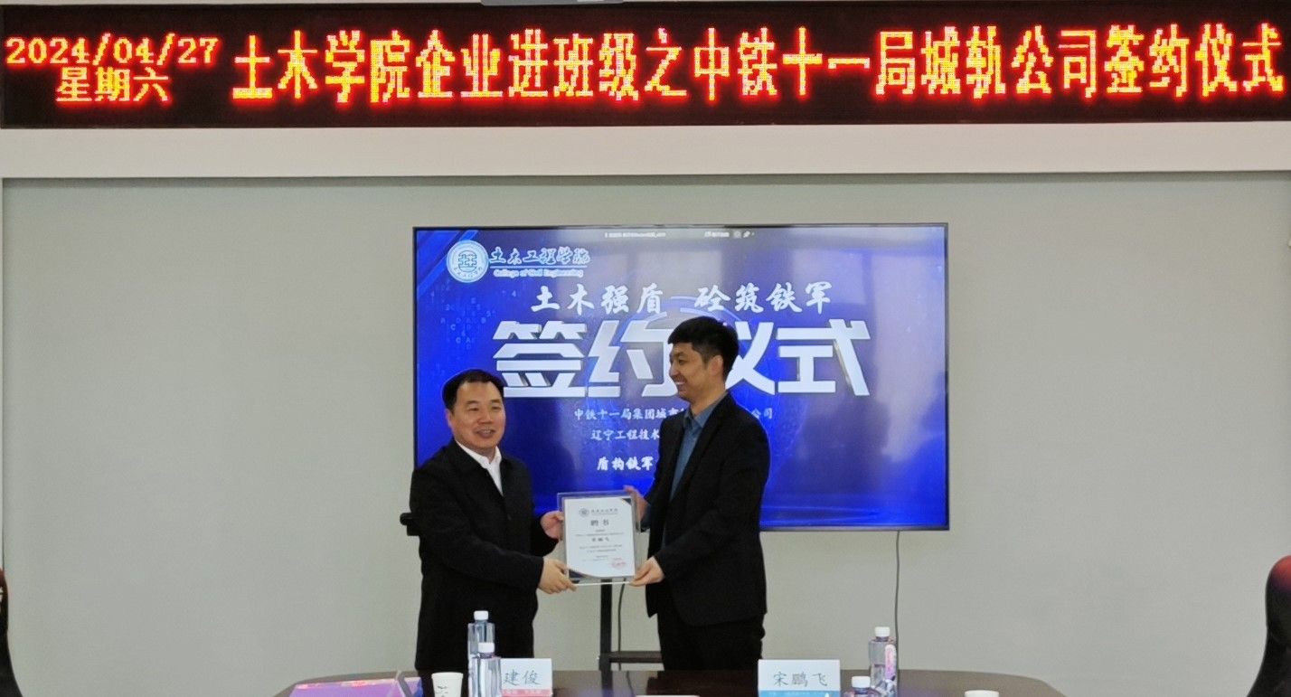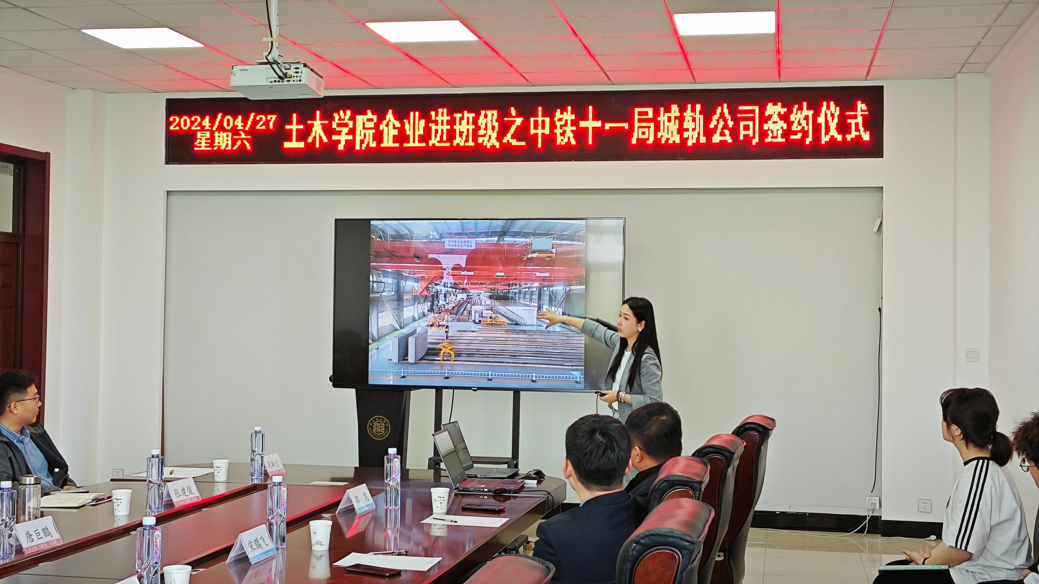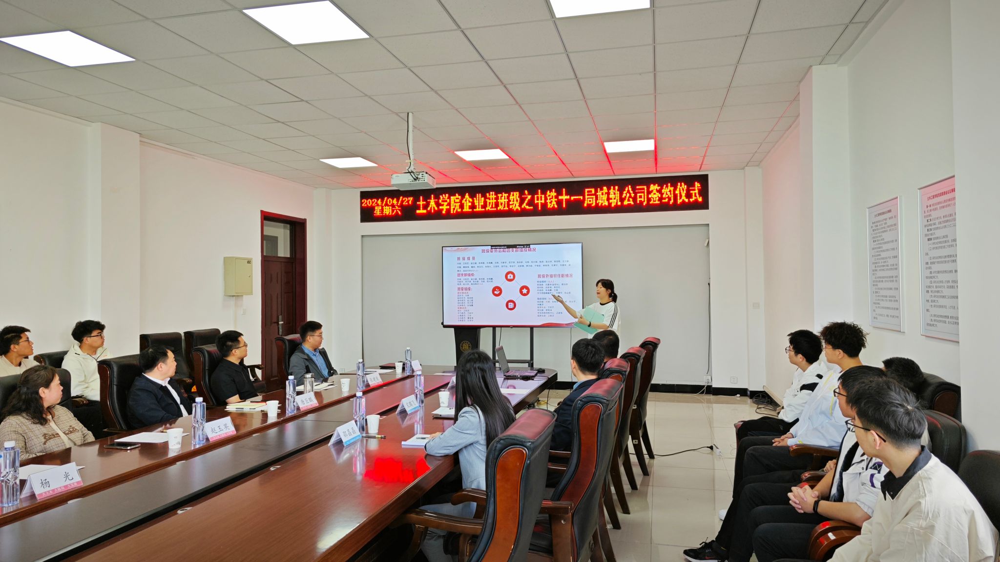 2024年4月27日,9001cc金沙登录开展了以“土木强盾,砼筑铁军”为主题的企业进班级之中铁十一局集团城市轨道工程有限公司签约仪式。企业进班级活动是唐巨鹏院长顶层设计下的“六进班级”工作模式之一,是为实现培养卓越工程师的人才培养目标,积极开展的创新人才培养模式。