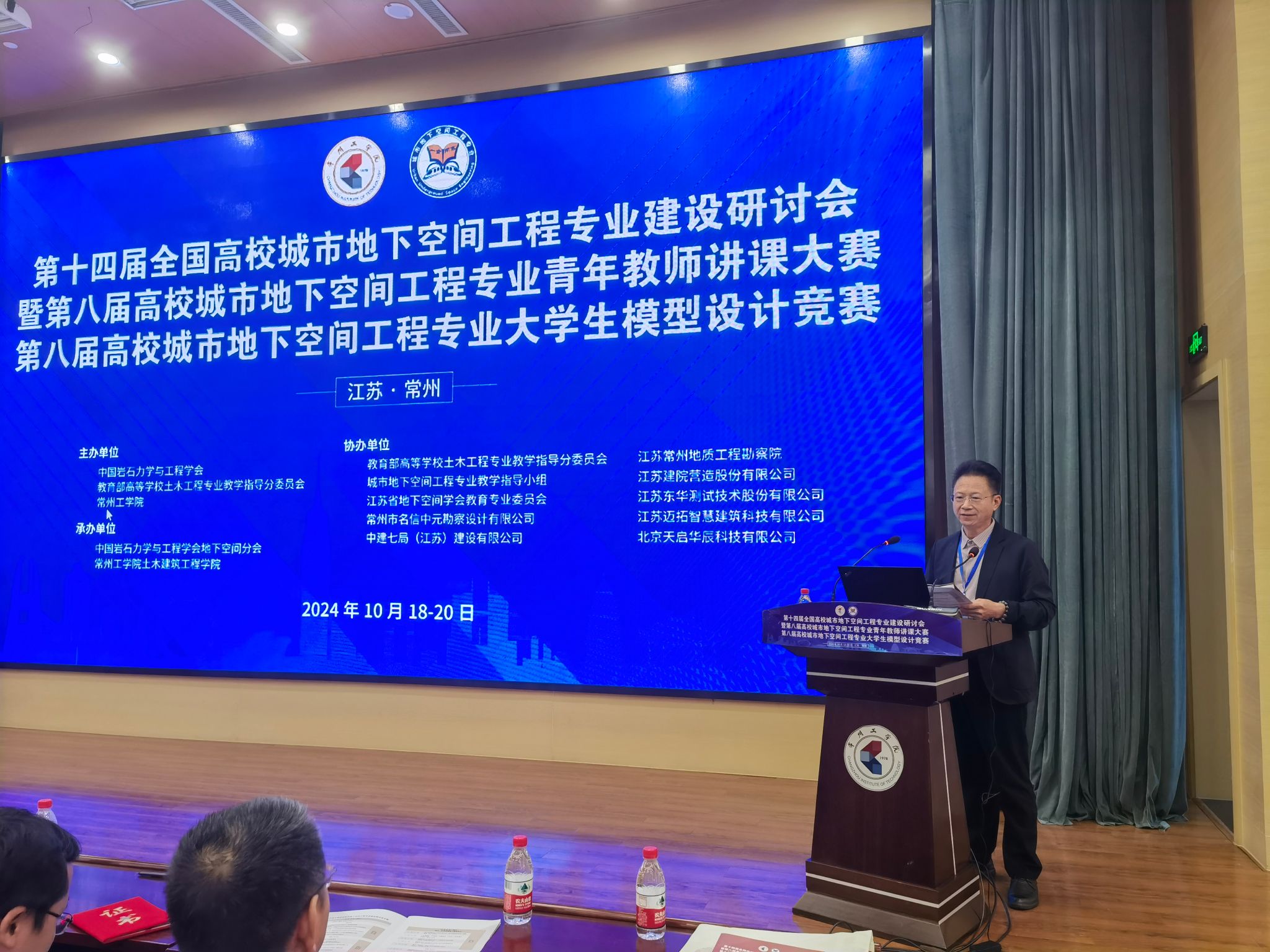 2024年10月18日~20日,由教育部高等学校土木工程专业教学指导分委员会、中国岩石力学与工程学会主办的第十四届全国高校城市地下空间工程专业建设研讨会暨第八届高校城市地下空间工程专业青年教师讲课大赛和大学生模型设计竞赛(简称“一会两赛”)在常州工学院隆重举行,来自全国高校的350余名师生参加了此次盛会。